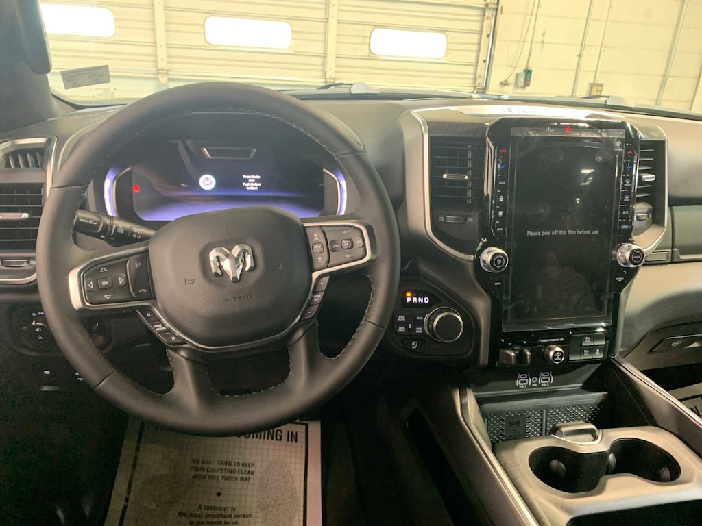 SiriusXM Radio Service, Power Adjustable Pedals, Leather Wrapped Steering Wheel, 12 Touchscreen Display, Glove Box Lamp, Auto Power-Folding Mirrors, 115V Auxiliary Rear Power Outlet, Media Hub w/2 Charge Only USBs, Heated Front Seats, Security Alarm, Black Premium Power Mirrors, Premium Overhead Console, 9 Amplified Speakers w/Subwoofer, Disassociated Touchscreen Display, Body Color Fender Flares, Remote Tailgate Release, 115V Auxiliary Power Outlet, LED Dome Lamp w/On/Off Switch, Universal Garage Door Opener, 2nd Row In Floor Storage Bins, Sun Visors w/Illuminated Vanity Mirrors, LED Footwell Lighting, Rear Window Defroster, Rear View Auto Dim Mirror, Rear Power Sliding Window, GPS Navigation, Overhead LED Lamps, Wheels: 20 x 9 Aluminum Chrome Clad (WRK), Tires: 275/55R20 OWL All, Tires: 275/55R20 OWL All Season, Bridgestone Brand Tires, Accent Color Premium Power Mirrors, Exterior Mirrors w/Supplemental Signals, Black Headlamp Bezels, Exterior Mirrors Courtesy Lamps, Grille Black Surround Black Mesh, Auto Power-Folding Mirrors, Wheels: 20 x 9.0 Aluminum Painted Clad, Auto Dim Exterior Driver Mirror, Black Exterior Truck Badging, Anti-Spin Differential Rear Axle, Accent Color Door Handles, Accent Color Tailgate Handle, Black Interior Accents, Dual Exhaust w/Black Tips, Body Color Front Bumper, Body Color Rear Bumper w/Step Pads, Black Tail Lamp Bezels, RAM Grille Badge - Black, Black Painted Exterior Mirrors Caps, MOPAR FRONT & REAR RUBBER FLOOR MATS, (STD). Ram Big Horn with Diamond Black Crystal Pearlcoat exterior and Black interior features a Straight 6 Cylinder Engine with 420 HP at 5200 RPM*. Approx. Original Base Sticker Price: $65,800*.