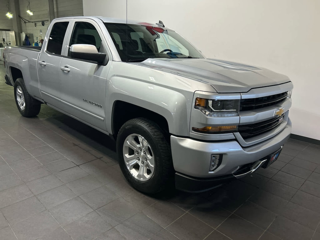 includes (AG1) driver 10-way power seat adjuster, (CJ2) dual-zone climate control, (BTV) Remote Vehicle Starter system, (C49) rear-window defogger, (N37) manual tilt and telescopic steering column, (KI4) 110-volt power outlet and (JL1) Integrated trailer brake controller (Includes (KA1) heated driver and front passenger seats and (CGN) spray-on bedliner. Includes (UTJ) Theft-deterrent system.), with seek-and-scan and digital clock, includes Bluetooth® streaming audio for music and select phones; USB ports; auxiliary jack; voice-activated technology for radio and phone; and Shop with the ability to browse, select and install apps to your vehicle. Apps include Pandora, iHeartRadio, The Weather Channel and more. (STD), includes aluminum block construction (355 hp [265 kW] @ 5600 rpm, 383 lb-ft of torque [518 Nm] @ 4100 rpm; more than 300 lb-ft of torque from 2000 to 5600 rpm) (STD), with overdrive and tow/haul mode. Includes Cruise Grade Braking and Powertrain Grade Braking (STD). Chevrolet LT with Silver Ice Metallic exterior and Jet Black interior features a 8 Cylinder Engine with 355 HP at 5600 RPM*.
