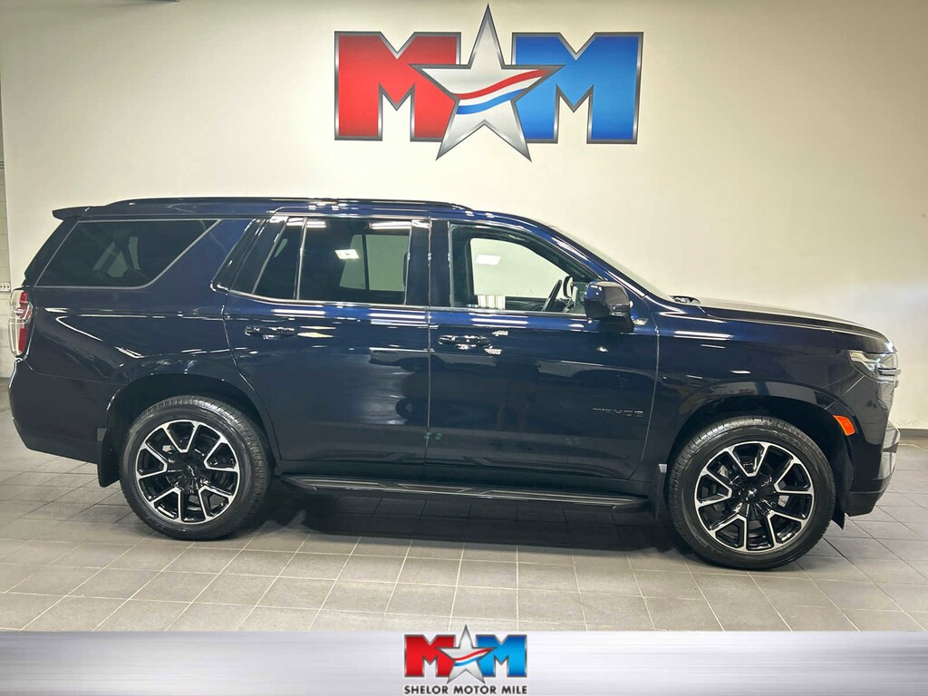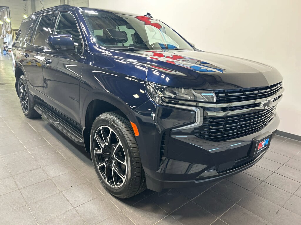 with express-open and close and power sunshade, AM/FM stereo, Bluetooth® audio streaming for 2 active devices, Apple CarPlay® and Android Auto® capable, enhanced voice recognition, in-vehicle apps, cloud connected personalization for select infotainment and vehicle settings. Subscription required for enhanced and connected services after trial period. (STD), with Dynamic Fuel Management, Direct Injection and Variable Valve Timing, includes aluminum block construction (355 hp [265 kW] @ 5600 rpm, 383 lb-ft of torque [518 Nm] @ 4100 rpm) (STD), electronically controlled with overdrive, includes Traction Select System including tow/haul (Most vehicles built on or after 6-7-2021 with a V8 engine will have (NSS) Not Equipped with Automatic Stop/Start, which removes Automatic Stop/Start, Engine control stop/start disable button and its content.) (STD). Chevrolet RST with Midnight Blue Metallic exterior and Jet Black/Victory Red interior features a 8 Cylinder Engine with 355 HP at 5600 RPM*. New Tires Nice