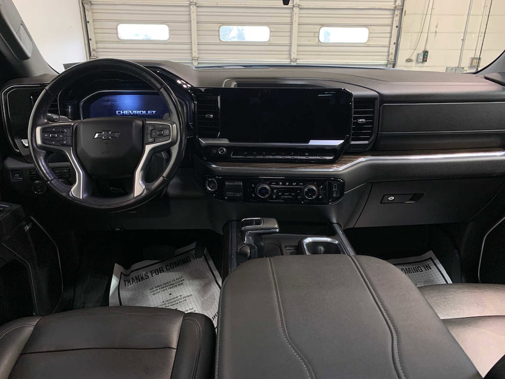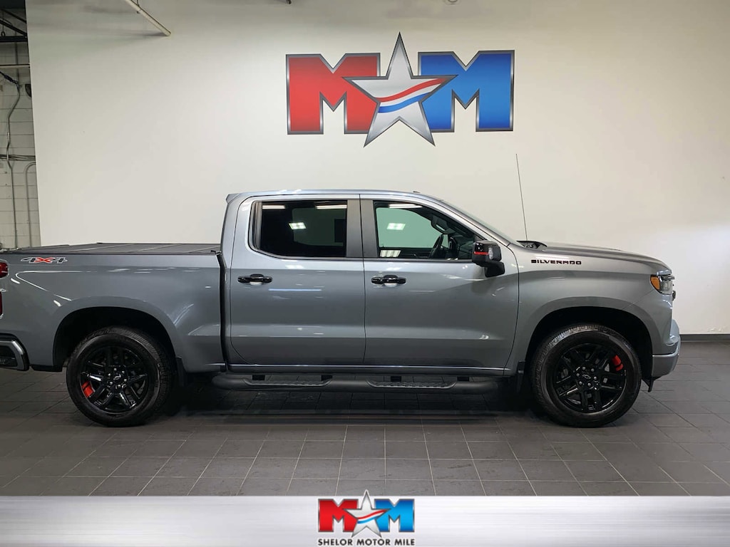 (420 hp [313 kW] @ 5600 rpm, 460 lb-ft of torque [624 Nm] @ 4100 rpm); featuring Dynamic Fuel Management that enables the engine to operate in 17 different patterns between 2 and 8 cylinders, depending on demand, to optimize power delivery and efficiency Includes (N10) dual exhaust and (NQH) 2-speed transfer case.), includes high gloss Black door handles, high gloss Black grille, Black tailgate lettering, headlamp dark bezel, Black with Red outline Silverado emblems for fenders and tailgate, Black RST badge on tailgate, Red stripes on outside rearview mirrors, Black rectangular dual exhaust tips, (UGA) Red recovery hooks, (RPS) 20 High gloss Black painted aluminum wheels with Red stripes, (WPQ) Protection Package and (RVS) Black assist steps, LPO When ordered with (L87) 6.2L EcoTec3 V8 engine or (LZ0) Duramax 3.0L Turbo-Diesel I6 engine includes Black hood badging. includes (UG1) Universal Home Remote, (A48) rear sliding power window, (PZ8) Hitch Guidance with Hitch View, (JL1) Trailer brake controller and (UET) Trailering App Includes (UQA) Bose Premium Sound System.), on Crew Cab models, includes (UV2) HD Surround Vision, (TRG) Trailer Camera Provisions, (UKV) Trailer Side Blind Zone Alert, (UFB) Rear Cross Traffic Alert-Braking, (UKK) Rear Pedestrian Alert and (U12) Perimeter Lighting (Certain vehicles built prior to 7-11-22 may be forced to include (00Y) Not Equipped with Rear Park Assist, which removes Rear Park Assist. See dealer for details or the window label for the features on a specific vehicle. Vehicles built on or after 7-11-22 will include (UD7) Rear Park assist. Includes (UD7) Rear Park Assist. includes (B1J) wheel house liners and (CGN) Chevytec spray-on bedliner, with center console (Includes (EPH) Electronic Transmission Range Selector (console mounted). 1st and 2nd rows on Crew Cab and Double Cab, (includes Chevrolet Bowtie logo), with Google built-in, 13.4 diagonal HD color touchscreen, includes multi-touch display, AM/FM stereo, Bluetooth® streaming audio for music and most phones; featuring wireless Android Auto® and Apple CarPlay® capability for compatible phones, advanced voice recognition, in-vehicle apps, personalized profiles for infotainment and vehicle settings (STD), with Electronic Transmission Range Selector, (ETRS), electronically controlled with overdrive, tow/haul mode and steering column paddle shifters. Includes Cruise Grade Braking and Powertrain Grade Braking, 60/40 folding bench for Crew Cab models, includes full-length bench seat, seatback storage on left and right side, center fold out armrest with 2 cupholders, full cab width under-seat storage, (includes child seat top tether anchor). Chevrolet RST with Sterling Gray Metallic exterior and Jet Black interior features a 8 Cylinder Engine with 420 HP at 5600 RPM*.