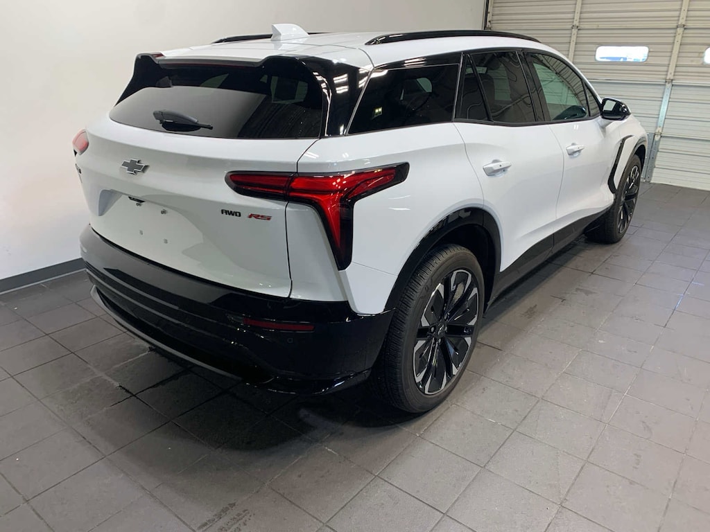 includes (WPN) Convenience and Driver Confidence Package, (UV6) Head-Up Display, (KCB) heated rear outboard passenger seat cushions, (DRZ) Rear Camera Mirror and (CMO) Heated Wiper Park, includes (KSG) Adaptive Cruise Control, (UKK) Rear Pedestrian Alert, (UOW) Side Bicyclist Alert, (UV2) HD Surround Vision, (UGN) Enhanced Automatic Emergency Braking, (CTB) Intersection Automatic Emergency Braking and (UVZ) Reverse Automatic Braking, (STD). Chevrolet eAWD RS with Summit White exterior and Black interior features a Electric Motor.