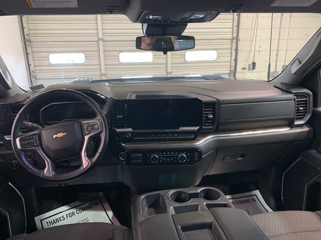 includes (KI4) 120-volt power outlet, (KC9) 120-volt bed-mounted power outlet, (UF2) Cargo bed LED lighting, (UBI) 2 charge-only USB ports for second row, (CJ2) dual-zone automatic climate control, (A2X) 10-way power driver seat including power lumbar, (N37) manual tilt/telescoping steering column, (T3U) LED fog lamps, Black (does not include spray-on liner on tailgate due to Black composite inner panel), includes (BTV) Remote Start, (UTJ) Theft Deterrent System and (C49) rear-window defogger, includes (Z71) Off-Road suspension with off-road tuned twin tube Rancho shocks, (JHD) Hill Descent Control and (NZZ) skid plates (transfer case and oil pan) Includes (QXT) LT265/70R17 all-terrain, blackwall tires and molded in color Black grille. includes (KA1) Heated driver and passenger seats and (KI3) Heated steering wheel, with Silver painted accents, 6-spoke, with Google built-in compatibility (select service plan required, terms and limitations apply) including navigation capability, 13.4 diagonal HD color touchscreen, includes multi-touch display, AM/FM stereo, Bluetooth® streaming audio for music and most phones; featuring Wireless Apple CarPlay® and Wireless Android Auto® capability for compatible phones, advanced voice recognition, in-vehicle apps, personalized profiles for infotainment and vehicle settings (STD), with Direct Injection and Variable Valve Timing, gasoline, (401 hp [299 kW] @ 5200 rpm, 464 lb-ft of torque [629 N-m] @ 4000 rpm) (STD), (STD). Chevrolet LT with Sterling Gray Metallic exterior and Jet Black interior features a 8 Cylinder Engine with 401 HP at 5200 RPM*. Originally bought here, New Tires
