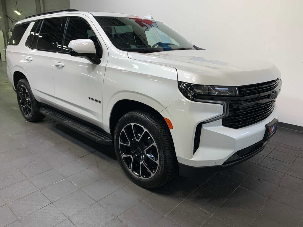 includes (WPD) Driver Alert Package content, (UV2) HD Surround Vision, (UKK) Rear Pedestrian Alert, (A45) memory settings, (DXR) outside heated power-adjustable, power-folding, body-color mirrors with driver-side auto-dimming and integrated turn signal indicators, (N38) power tilt and telescopic steering column, (KI3) heated steering wheel, (KA6) second row outboard heated seats, (ATT) second row power 60/40 split-folding bench seats and (AS8) third row power 60/40 split-folding bench seats Also includes (KSG) Adaptive Cruise Control and (UGN) Enhanced Automatic Emergency Braking. with express-open and close and power sunshade, SEATS, SECOND ROW BUCKET, POWER RELEASE, (dealer-installed), (select service plan required, terms and limitations apply), including nav capability, 10.2 diagonal HD color touchscreen, includes multi-touch display, AM/FM stereo, Bluetooth® streaming audio for music and most phones; featuring wireless Apple CarPlay® and wireless Android Auto® capability for compatible phones, advanced voice recognition, in-vehicle apps, personalized profiles for infotainment and vehicle settings (STD), STEERING WHEEL, HEATED, with Dynamic Fuel Management, Direct Injection and Variable Valve Timing, includes aluminum block construction (355 hp [265 kW] @ 5600 rpm, 383 lb-ft of torque [518 Nm] @ 4100 rpm) (STD), electronically controlled with overdrive, includes Traction Select System including tow/haul (STD), includes (UKC) Lane Change Alert with Side Blind Zone Alert and (UFG) Rear Cross Traffic Alert. Chevrolet RST with Iridescent Pearl Tricoat exterior and Jet Black/Victory Red interior features a 8 Cylinder Engine with 355 HP at 5600 RPM*.