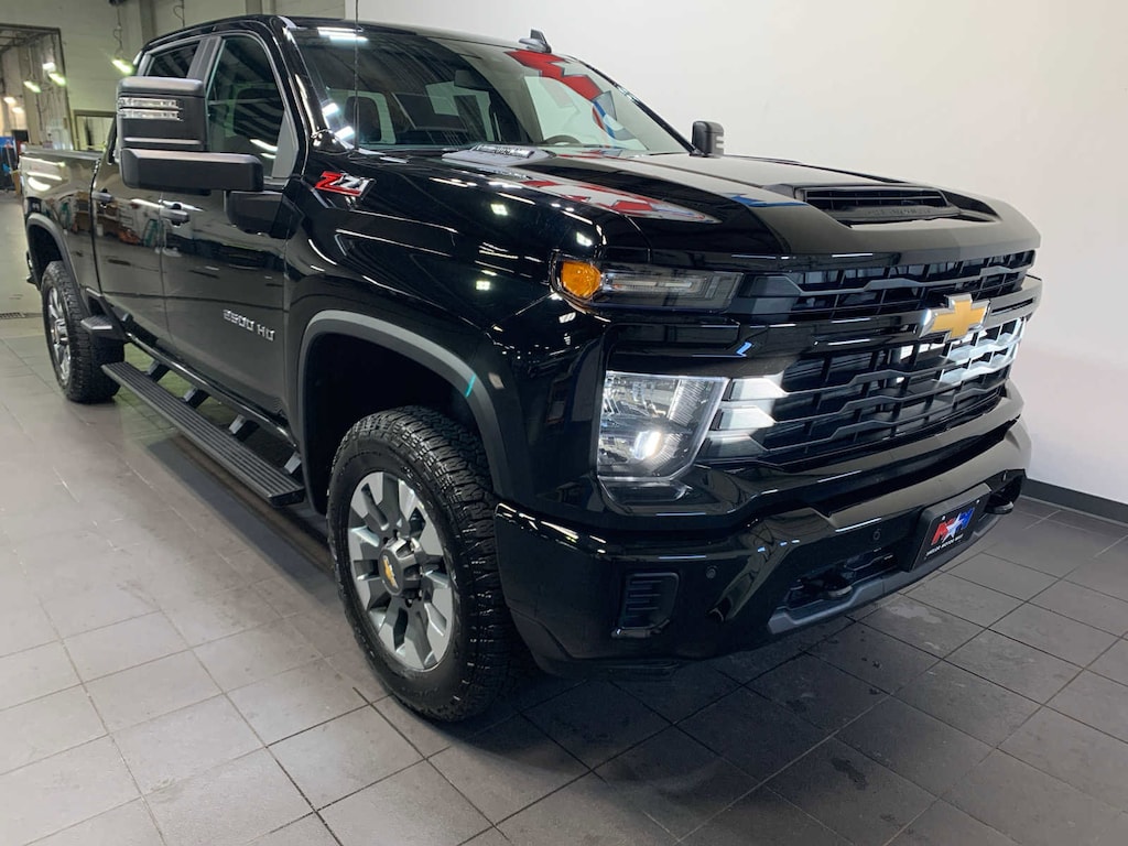 B20-Diesel compatible, (470 hp [350.5 kW] @ 2800 rpm, 975 lb-ft of torque [1322 Nm] @ 1600 rpm), includes (BTV) Remote Start with (UTJ) content theft alarm, (KI4) 120-volt power outlet, (KC9) 120-volt bed-mounted power outlet, (UBI) 2 charge-only USB ports for second row, (C49) rear-window defogger, (A2X) 10-way power driver seat including power lumbar, (UF2) bed LED cargo area lighting, (QT5) EZ Lift power lock and release tailgate (Included with (PDX) Custom Value Package. Beginning with the start of production certain vehicles will be forced to include (RFO) Not Equipped with USB ports rear.), Hitch platform to accept Gooseneck or 5th Wheel hitch. Includes hitch platform with tray to accept ball, stamped bed holes with removable caps installed and bed mounted 7-pin trailer harness (similar to UY2 harness). (Includes (CGN) Chevytec spray-on bedliner.), includes (UD5) Front and Rear Park Assist, (UKC) Lane Change Alert with Side Blind Zone Alert and (UFG) Rear Cross Traffic Alert, lower convex mirrors, turn signal indicators, puddle lamps, (U12) perimeter lighting, auxiliary lighting, power folding/manual extending (extends 3.31 [84.25mm]) Includes (DD8) auto-dimming rearview mirror. includes (Z71) Off-Road suspension with off-road tuned twin tube Rancho shocks, (JHD) Hill Descent Control and (NZZ) skid plates (transfer case and oil pan), 7 diagonal HD color touchscreen, AM/FM stereo, Bluetooth® audio streaming for 2 active devices, voice command pass-through to phone, Wireless Apple CarPlay® and Wireless Android Auto® compatibility (STD), TRANSMISSION, ALLISON 10-SPEED AUTOMATIC. Chevrolet Custom with Black exterior and Jet Black interior features a 8 Cylinder Engine with 470 HP at 2800 RPM*. Local Trade-In