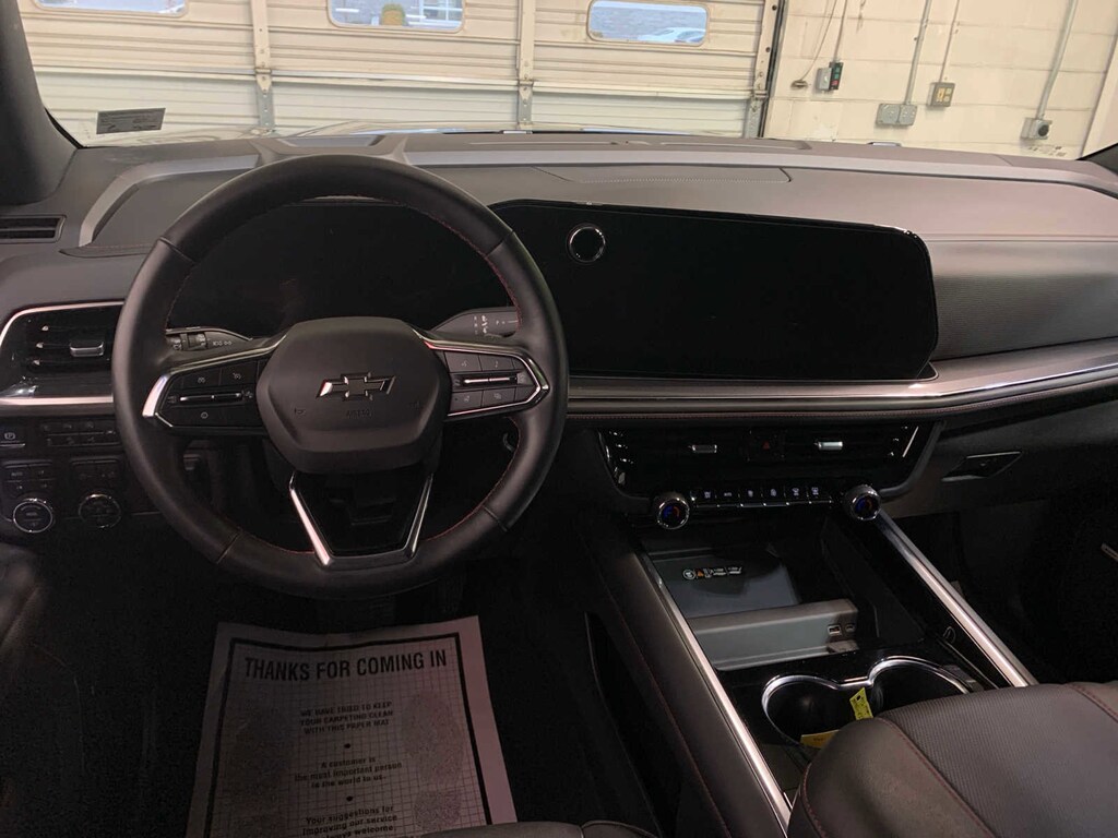 includes (Z95) Magnetic Ride Control, (F47) Air Ride Adaptive Suspension (4WD only) and (DCH) power-sliding center console, includes (A45) memory settings, (UQS) Bose 10-speaker Surround with CenterPoint, (DXR) outside heated power-adjustable, power-folding, body-color mirrors with driver-side auto-dimming and integrated turn signal indicators, (KI3) heated steering wheel, (KA6) second row outboard heated seats, (ATT) second row power 60/40 split-folding bench seats, (AS8) third row power 60/40 split-folding bench seats, (TGE) LED animated headlamps and (TAU) LED animated tail lamps, with express-open and close and power sunshade, includes (ZL6) Advanced Trailering Package, (JL1) trailer brake controller and (V03) extra capacity cooling system Also includes (NQH) 2-speed active transfer case and (JHD) Hill Descent Control on 4WD models. SEATS, SECOND ROW BUCKET, POWER RELEASE, SUSPENSION, AIR RIDE ADAPTIVE, with Dynamic Fuel Management, Direct Injection and Variable Valve Timing, includes aluminum block construction (355 hp [265 kW] @ 5600 rpm, 383 lb-ft of torque [518 Nm] @ 4100 rpm) (STD), electronically controlled with overdrive, includes Traction Select System including tow/haul (STD), with Google built-in compatibility (select service plan required, terms and limitations apply), including navigation capability, connected apps, personalized profiles for each drivers settings, Natural Voice Recognition and Phone Integration (STD), includes (UKW) Blind Zone Steering Assist with Trailering, (PZ8) Hitch View and (UET) Smart Trailer Integration Indicator. Chevrolet RST with Dark Ash Metallic exterior and Jet Black/Victory Red interior features a 8 Cylinder Engine with 355 HP at 5600 RPM*. Originally bought here