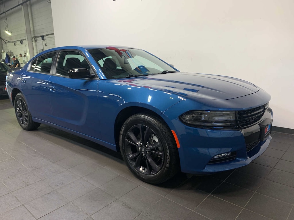 Gloss Black I/P Cluster Trim Rings, Black 1-Piece Performance Spoiler, Satin Black Charger Decklid Badge, Satin Black Dodge Tail Lamp Badge, Wheels: 19 x 7.5 Black Noise Painted, Dodge Grille Badge, AWD Rhombi Black Badge, Heated Steering Wheel, Heated Front Seats, (STD), (STD). Dodge SXT with Frostbite exterior and Black interior features a V6 Cylinder Engine with 300 HP at 6350 RPM*.