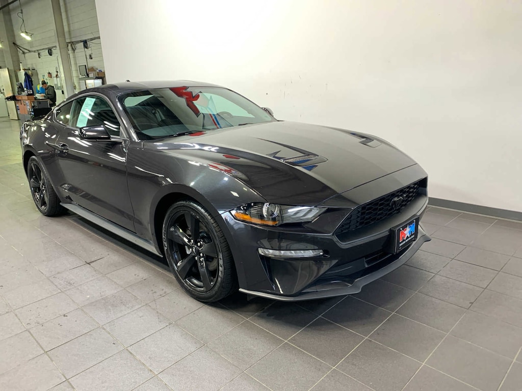 Tires: 235/50ZR18 BSW AS, Dual-Zone Automatic Temperature Control, Wheels: 18 x 8 Machined-Face Aluminum, high-gloss ebony black-painted pockets, Rear Parking Sensors, Selectable Drive Modes w/Toggle Switches, Radio: AM/FM Stereo w/MP3 Player, 9 speaker stereo system (3 speakers), SYNC 3 Communications & Entertainment System, enhanced voice recognition, 8 LCD capacitive touch screen in center stack w/swipe capability, AppLink, 911 Assist, Apple CarPlay® and Android Auto® compatibility and 2 smart charging USB ports, SiriusXM Radio, 3 months prepaid subscription, Service is not available in AK or HI, SiriusXM audio and data services each require a subscription sold separately, or as a package, by SiriusXM Radio Inc, If you decide to continue service after your trial, the subscription plan, 3.15 Limited Slip Rear Axle Ratio, Leather-Wrapped Shift Knob, Tires: 19, Black Blade Decklid Spoiler, Black Mirror Caps, Black Front & Rear Pony Badges, Black Grille, Wheels: 19 x 8.5 Ebony Black-Painted Aluminum, MINI SPARE WHEEL & TIRE. Ford EcoBoost with Dark Matter Gray Metallic exterior and Ebony interior features a 4 Cylinder Engine with 310 HP at 5500 RPM*.