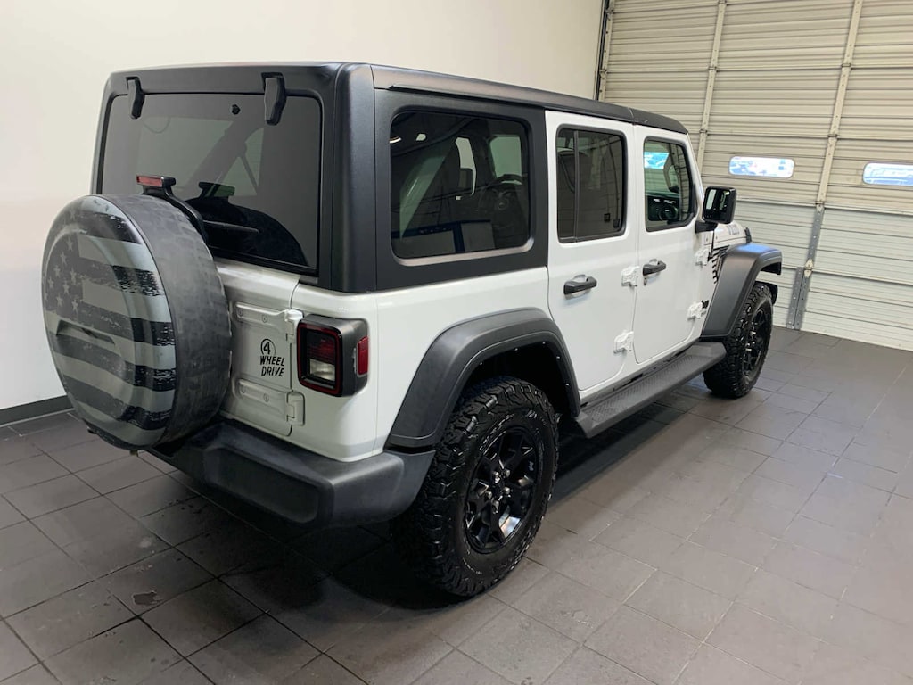 Front 1-Touch Down Power Windows, Speed Sensitive Power Locks, Power Heated Mirrors, Half Doors w/Uppers, Remote Keyless Entry, TRANSMISSION: 8-SPEED AUTOMATIC (850RE), Engine: 3.6L V6 24V VVT eTorque UPG I, Transmission: 8-Speed Automatic (850RE), Willys, Mold In Color Bumper w/Gloss Black, Black Trail Rated Badge, 4-Wheel Drive Swing Gate Decal, Black Grille, MOPAR All-Weather Floor Mats (DISC), Willys Hood Decal, Rock Protection Sill Rails, Wrangler Decal, Matte Black Jeep Badge, Freedom Panel Storage Bag, Rear Window Defroster, Rear Window Wiper/Washer, No Soft Top, 600 Amp Maintenance Free Battery, 48V Belt Starter Generator, GVWR: 5,460 lbs, Engine Oil Cooler, Delete Alternator, REMOTE PROXIMITY KEYLESS ENTRY, SiriusXM Radio Service, For More Info, Call 800-643-2112. Jeep Unlimited Willys Sport with Bright White Clearcoat exterior and Black interior features a V6 Cylinder Engine with 285 HP at 6400 RPM*. Serviced here, Originally bought here, Local Trade-In