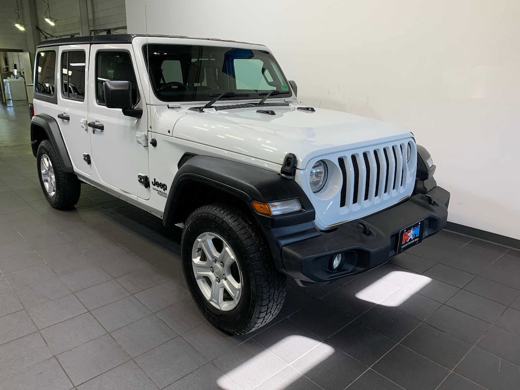 (STD), (STD). Jeep Unlimited Sport with Bright White Clearcoat exterior and Black interior features a 4 Cylinder Engine with 270 HP at 5250 RPM*.