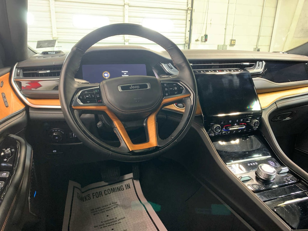 Engine: 3.6L V6 24V VVT UPG I w/ESS, Transmission: 8-Speed Automatic (8HP50), 950 Watt Amplifier, Deluxe Headliner, Palermo Leather Door Trim, Summit Reserve Badge, Ventilated Rear Seats, Summit Reserve, Wheels: 21 x 9 Black Painted Aluminum, Painted Door Cladding, Gloss Black Exterior Accents, Neutral Gray Exterior Accents, Wireless Charging Pad, 2nd Row Manual Window Shades, TRANSMISSION: 8-SPEED AUTOMATIC (8HP50), (STD). Jeep Summit Reserve with Midnight Sky exterior and Global Black interior features a V6 Cylinder Engine with 293 HP at 6400 RPM*.
