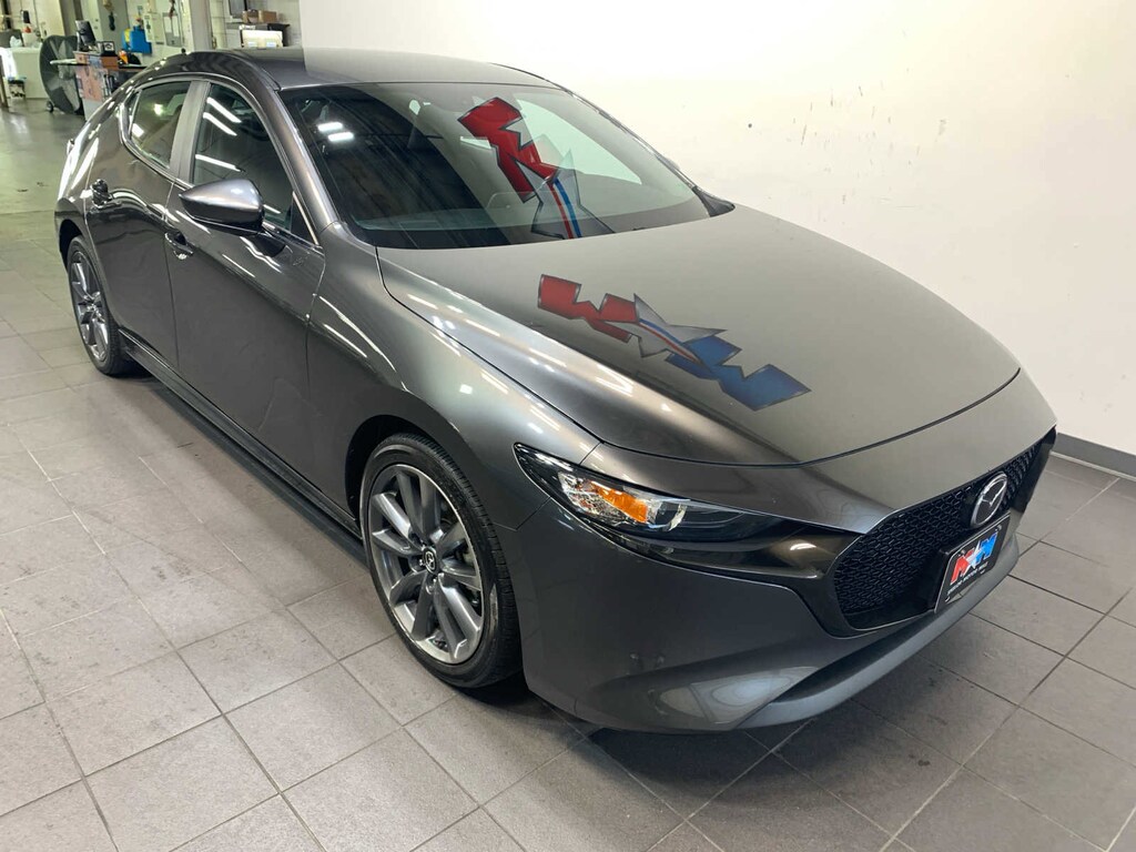 Back-Up Camera, iPod/MP3 Input, Onboard Communications System, Aluminum Wheels, Keyless Start, Dual Zone A/C, Apple CarPlay®, WiFi Hotspot, Lane Keeping Assist, Cross-Traffic Alert, Blind Spot Monitor, Smart Device Integration Rear Spoiler, MP3 Player, Keyless Entry, Child Safety Locks, Steering Wheel Controls. Mazda Mazda3 Hatchback Select with Machine Gray Metallic exterior and Black interior features a 4 Cylinder Engine with 186 HP at 6000 RPM*. New Tires, Local Trade-In