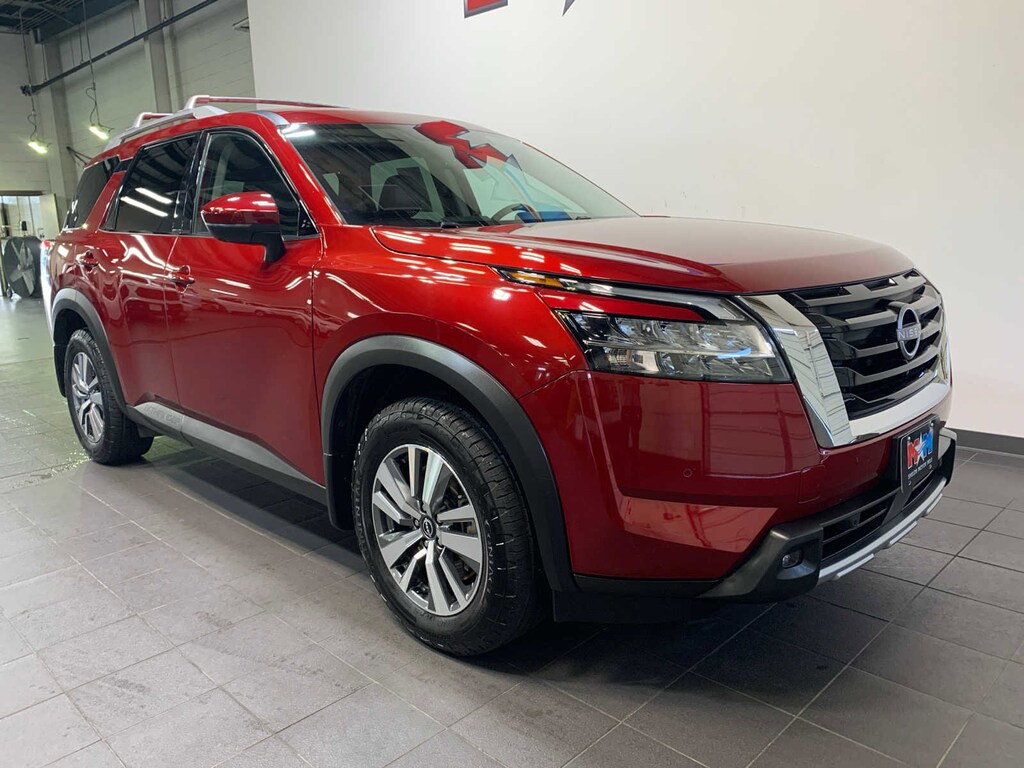 [E09-2] PREMIUM PAINT - SCARLET EMBER TINTCOAT, CROSS BARS, LED FOG LAMPS, BLACK SPLASH GUARDS (SET OF 4). Nissan SL with Scarlet Ember Tintcoat exterior and Charcoal interior features a V6 Cylinder Engine with 284 HP at 6400 RPM*. Local Trade-In