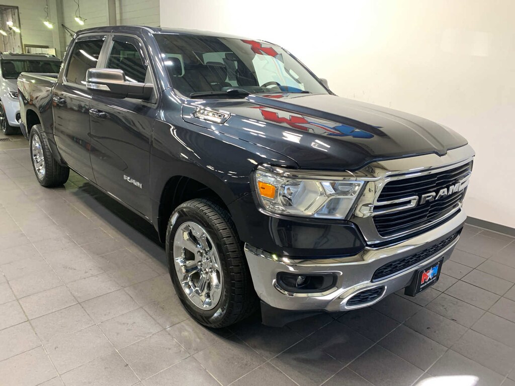 Active Noise Control System, Heavy Duty Engine Cooling, GVWR: 7,100 lbs, Dual Rear Exhaust w/Bright Tips, HEMI Badge, 23 Gallon Fuel Tank, 18 Aluminum Spare Wheel, WHEELS: 20 X 9 ALUMINUM CHROME CLAD (WRK), SiriusXM Radio Service, Radio: Uconnect 4 w/8.4 Display, Rear Window Defroster, Rear View Auto Dim Mirror, Power Adjustable Pedals, For More Info, Call 800-643-2112, Rear Power Sliding Window, Rear Dome w/On/Off Switch Lamp, Glove Box Lamp, Power 4-Way Driver Lumbar Adjust, Power 8-Way Driver Seat, Auto Dim Exterior Driver Mirror, Foam Bottle Insert (Door Trim Panel), Class IV Receiver Hitch, Black Premium Power Mirrors, Big Horn IP Badge, SiriusXM Satellite Radio, Exterior Mirrors w/Supplemental Signals, Exterior Mirrors Courtesy Lamps, Universal Garage Door Opener, Cluster 3.5 TFT Color Display, Power-Folding Mirrors, 2nd Row In Floor Storage Bins, Sun Visors w/Illuminated Vanity Mirrors, Power 8-Way Driver Seat, Center Console Parts Module, Bucket Seats, Manual Adjust 4-Way Front Passenger Seat, Full Length Floor Console, Power 4-Way Driver Lumbar Adjust, REMOTE START SYSTEM, TRANSMISSION: 8-SPEED AUTOMATIC (8HP75). Ram Big Horn with Maximum Steel Metallic Clearcoat exterior and Black interior features a 8 Cylinder Engine with 305 HP at 6400 RPM*. Serviced here, Originally bought here, Local Trade-In