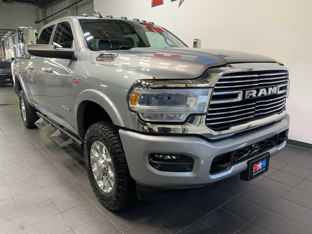 Mirror-Mounted Aux Reverse Lamps, Rain Sensitive Windshield Wipers, Power Adjustable Pedals w/Memory, Power Chrome Tow Mirrors w/Convex Spotter & Memory, Remote Tailgate Release, 17 Speaker harman/kardon Premium Sound, Auto High Beam Headlamp Control, Exterior Mirrors w/Memory, Heated Second Row Seats, Foam Bottle Insert (Door Trim Panel), 2nd Row In Floor Storage Bins, Radio/Driver Seat/Mirrors/Pedals Memory, Radio: Uconnect 5 Nav w/8.4 Display, Off-Road Information Pages, Disassociated Touchscreen Display, HD Radio, For Details, Visit DriveUconnect.com, For More Info, Call 800-643-2112, GPS Navigation, SiriusXM w/360L, All Radio Equipped Vehicles, Connected Travel & Traffic Services, All R1 High Radios, Alexa Built-In, Power Adjustable Convex Aux Mirrors, Clearance Lamps, Tires: LT275/70R18E OWL On/Off Road, I/P Mounted Auxiliary Switches, Dash Pass Thru Wire Circuits, Anti-Spin Differential Rear Axle, Transfer Case Skid Plate Shield, 220 Amp Alternator, Bucket Seats, High Back Seats, #1 Seat Foam Cushion, Folding Flat Load Floor Storage, Full Length Upgraded Floor Console, (STD), (STD). Ram Laramie with Billet Silver Metallic Clearcoat exterior and Black interior features a 8 Cylinder Engine with 410 HP at 5600 RPM*. New Tires