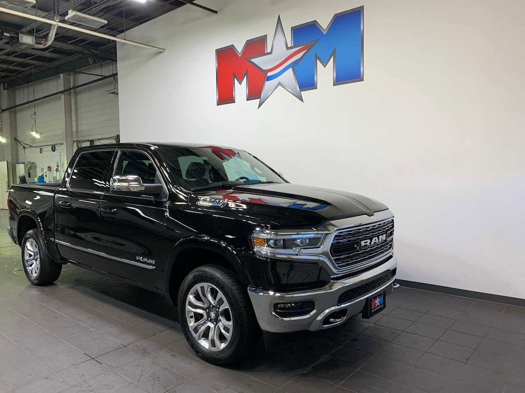 LED Dome/Reading Lamp, Dome Dual LED Reading Lamp, Delete Alternator, 18 Aluminum Spare Wheel (STD), (STD). Ram Limited with Diamond Black Crystal Pearlcoat exterior and Black interior features a 8 Cylinder Engine with 395 HP at 5600 RPM*.