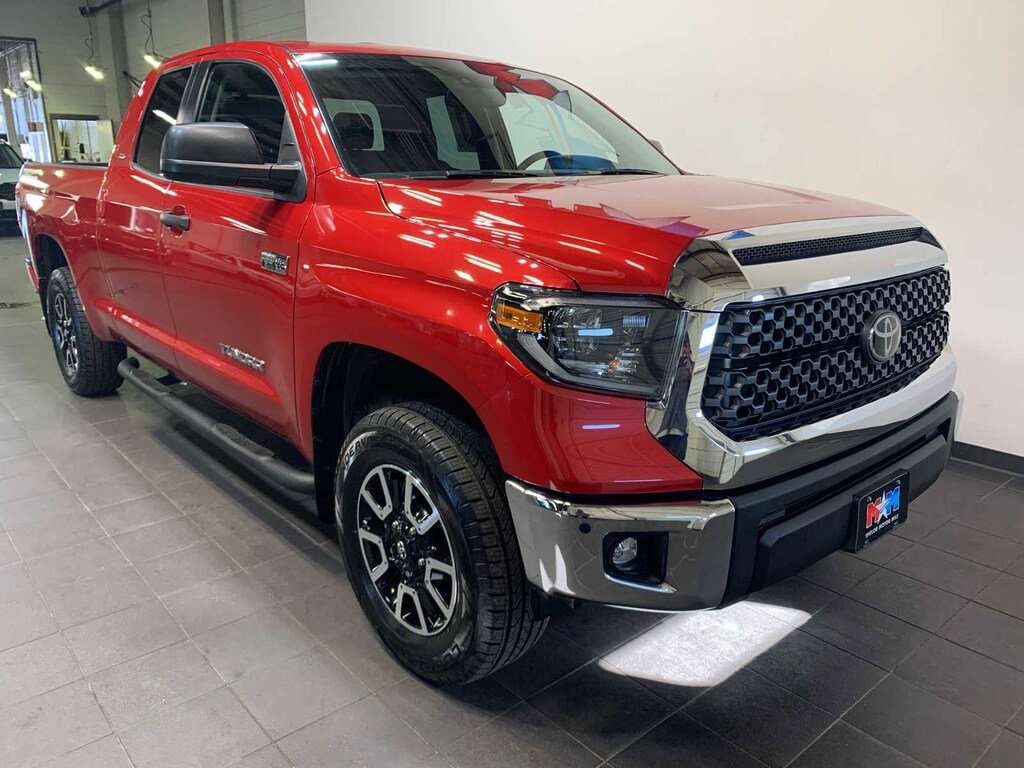 off-road package option 1 and EVP 5 value package, LED Wide Angle Front Fog & Driving Lights, LED Headlights w/Black Sport Trim, LED accent lights, manual level control and auto on/off feature, TRD Off Road Floor Mats, Trail-Tuned Bilstein Shock Absorbers, Front Tow Hooks, Bedside TRD Off Road Decal, Tires: P275/65R18, Wheels: 18 x 8J Split 5-Spoke TRD Off-Road Alloy, Engine & Fuel Tank Skid Plates, Smart Key Fob Wireless Door Lock, push button start, remove keyless entry w/lock, unlock and panic functions and remote illuminated entry, Push Start Starting System, Front & Rear Clearance Backup Sonar, Blind Spot Monitor w/Rear Cross Traffic Alert, lane change assist, front center console w/floor-mounted urethane shift lever/knob and 3 front cupholders, Urethane Tilt/Telescopic 4-Spoke Steering Wheel, audio, multi-information display, Bluetooth®, hands-free phone, voice-command, dynamic radar cruise control and lane departure alert controls, Anti-Theft Immobilizer w/Alarm, engine immobilizer, 38 Gallon Fuel Tank Capacity, Front Bucket Seats, 10-way power-adjustable drivers seat and 4-way manual adjustable front passenger seat. Toyota SR5 with Barcelona Red Metallic exterior and Graphite interior features a 8 Cylinder Engine with 381 HP at 5600 RPM*. New Tires, Local Trade-In Great Shape